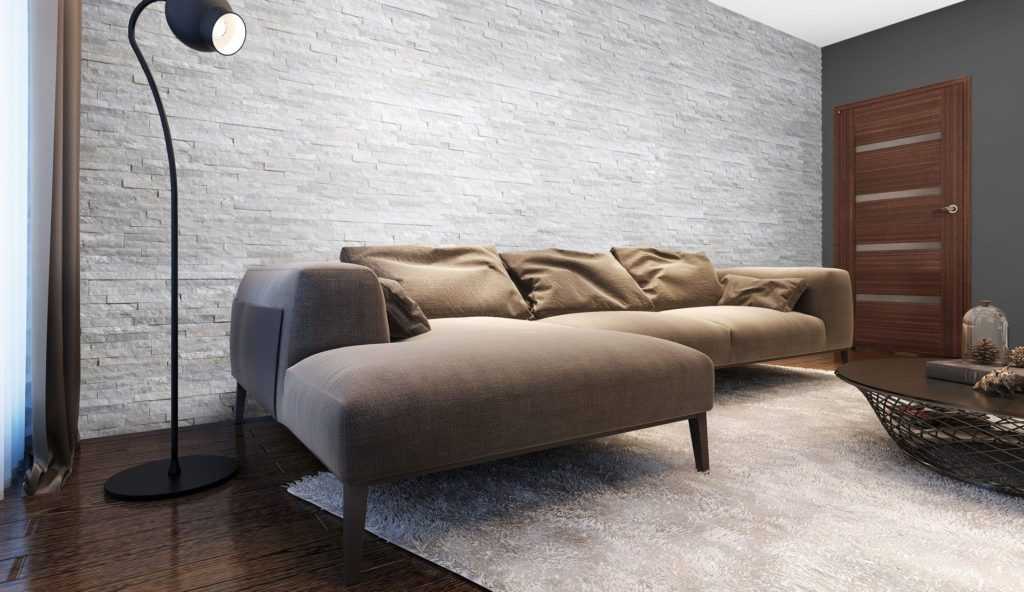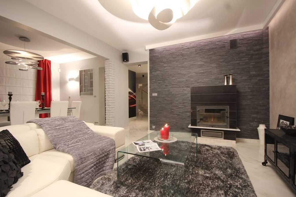 Натуральный камень на стену в гостиной является эксклюзивным и очень дорогим решением. Однако его цена полностью оправдана. Облицовка камня впечатляет своей прочностью, уникальной расцветкой и рисунком. При надлежащем уходе он может существовать десятки или даже сотни лет. Это лучше всего демонстрируют исторические интерьеры церквей и дворцов.