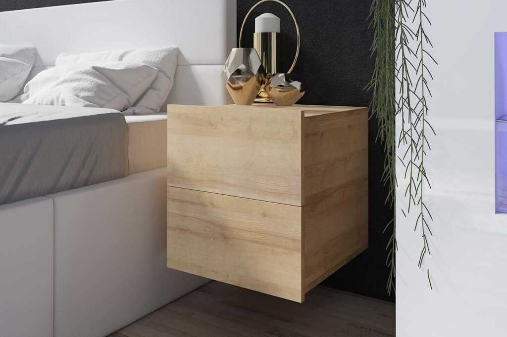 Не так давно появились новые модели стильных прикроватных тумб – подвесные. Их крепят к стене, освобождая пространство пола. В последнее время этот вид набирает популярность из-за его необычного дизайна.