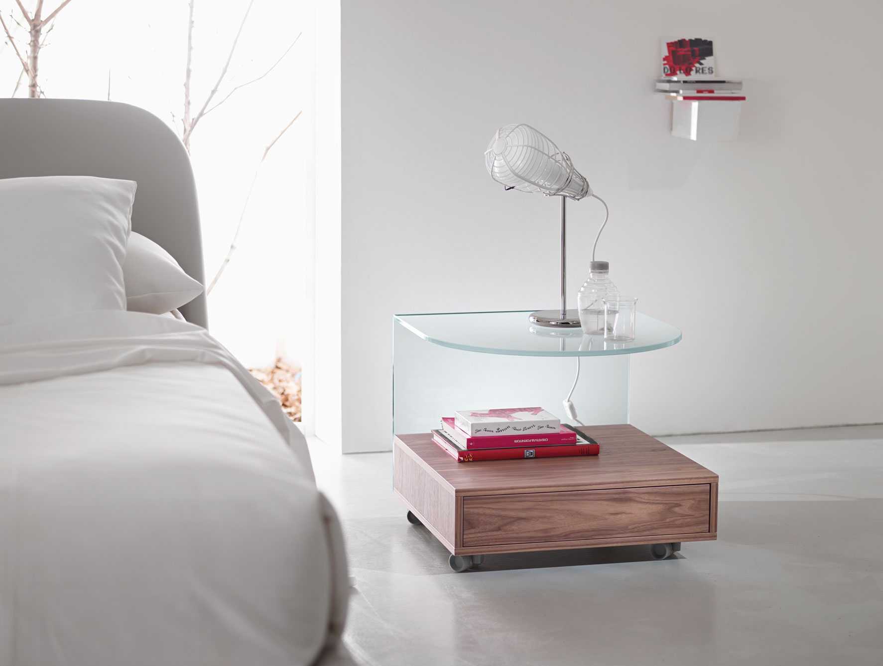 можно отталкиваясь от свободной площади в спальне. Если спальня малогабаритная, или кровать (диван) стоит в гостиной – выбирайте маленькие прикроватные тумбы с функциональными ящиками. Массивные тумбы с нишами или дверцами визуально сделают комнату захламленнее и не опрятнее.