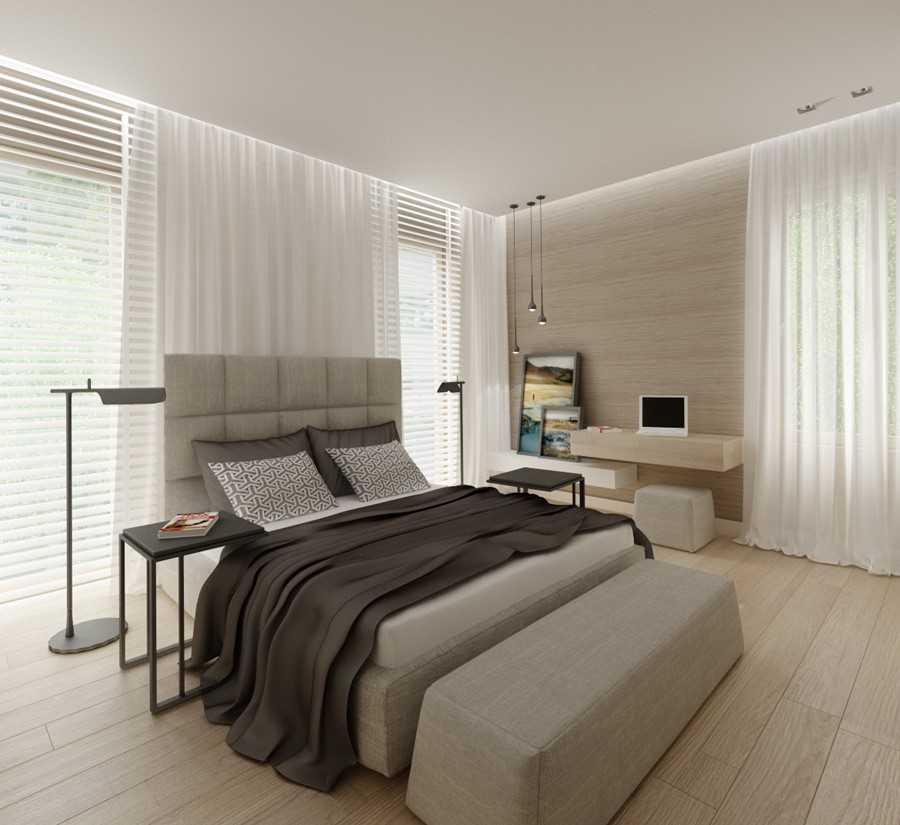 Если у вас нет возможности выделить отдельное помещение под рабочий кабинет, необходимо постараться выдержать минималистический стиль при оформлении рабочей зоны в спальне. В помещении с компьютерным столом и офисным креслом подушечки с рюшами и другие декоративные элементы будут выглядеть нелепо.