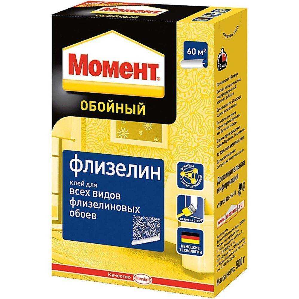 Момент Флизелин – еще один клей от немецкой компании Хенкель. Он представляет собой смесь модифицированного крахмала и метилцеллюлозы. По свои характеристикам продукт очень близок к Метилану. Он прекрасно справляется с удержанием большого веса флизелиновых обоев и подходит для нанесения на большинство поверхностей.