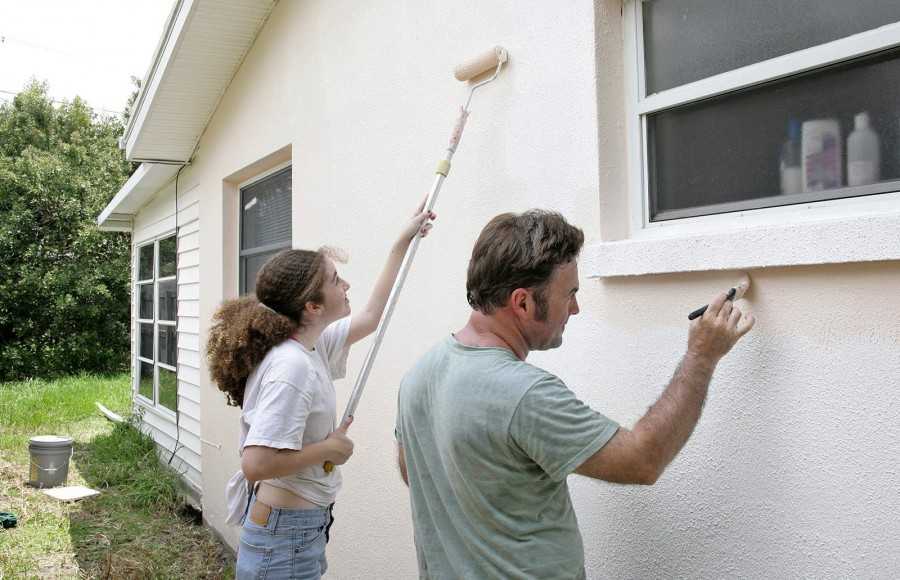 Процесс покраски наружных стен поверх штукатурки своими руками