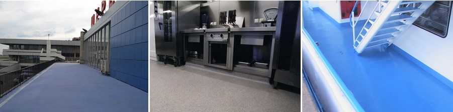 Такое покрытие получило широкое распространение и используется буквально повсюду: в торговых центрах, бассейнах, медицинских учреждениях, на складах, а также в жилых помещениях, где от напольного покрытия требуются наилучшие эксплуатационные качества (кухня, ванна, но можно использовать и в комнатах).