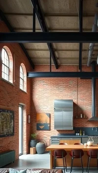 Проект 3: Кухня-гостиная в стиле лофт с использованием кирпичной кладки (премиум-сегмент)