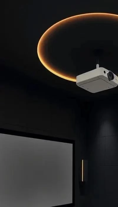 Освещение: Освещение должно быть приглушенным и регулируемым. Используйте диммеры для управления яркостью света. Избегайте прямых источников света, направленных на экран. Рассмотрите возможность установки светодиодной подсветки за экраном для создания эффекта амбиентного освещения. Темные тона в оформлении комнаты также способствуют улучшению качества изображения. Оптимальное освещение создаст атмосферу кинотеатра и снизит нагрузку на глаза.