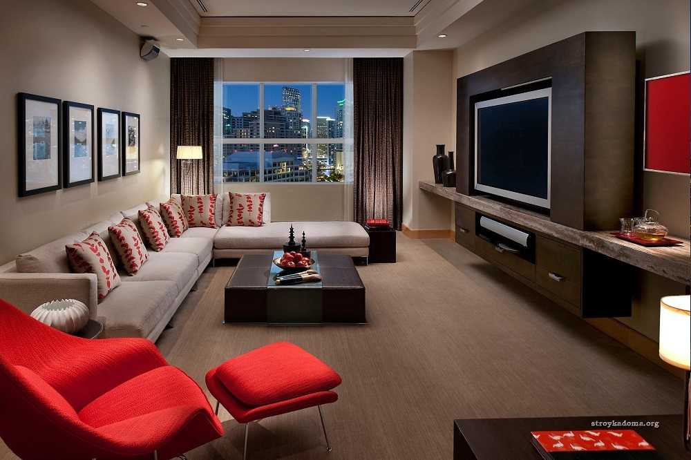 Необычная, а главное функциональная идея — выставка снимков за телевизором. Прибор будет играть роль составляющего объекта в декоре.