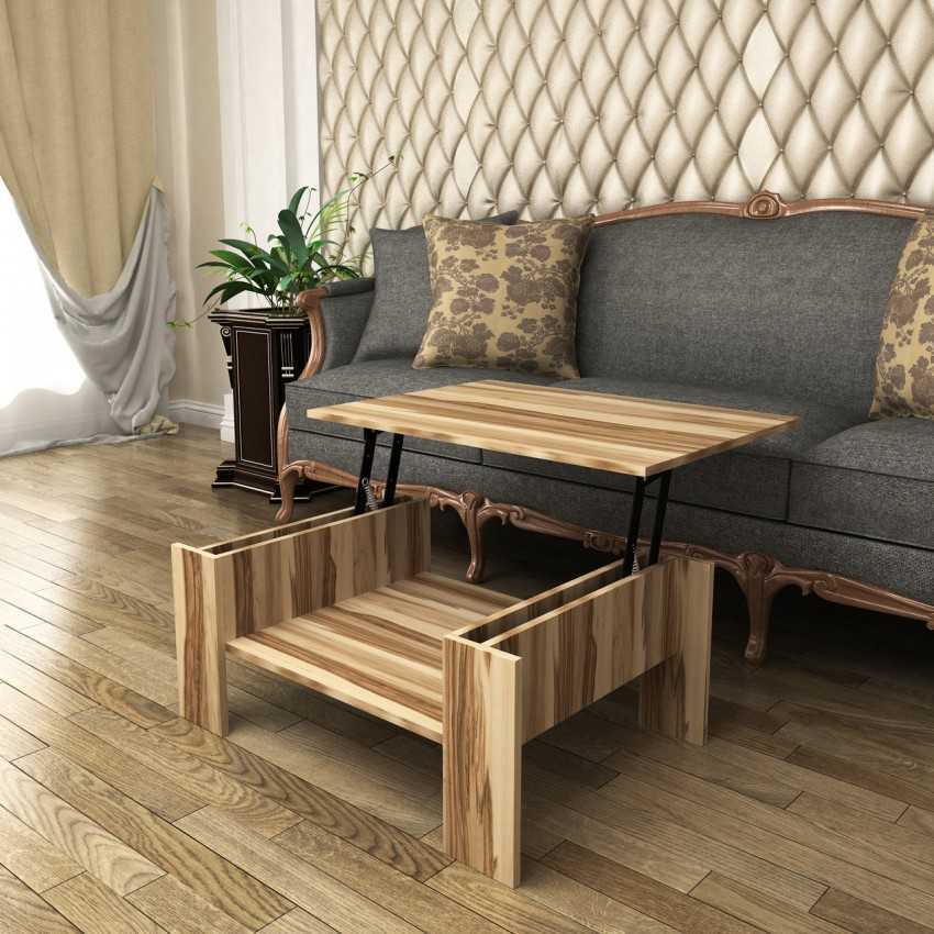 Оптимальный вариант трансформации журнального стола в обеденный – это преобразование изделия за счет подъема столешницы. Таким образом, конструкция принимает высоту обычного обеденного стола. Оснащение раздвижным механизмом помогает увеличить поверхность стола. Благодаря этому миниатюрный журнальный столик фактически становится больше вдвое (в высоту и длину).