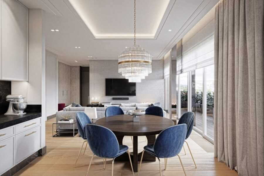 Чтобы небольшая гостиная с обеденным столом выглядела стильно и не превратилась в загроможденное пространство, важно учитывать следующие рекомендации: