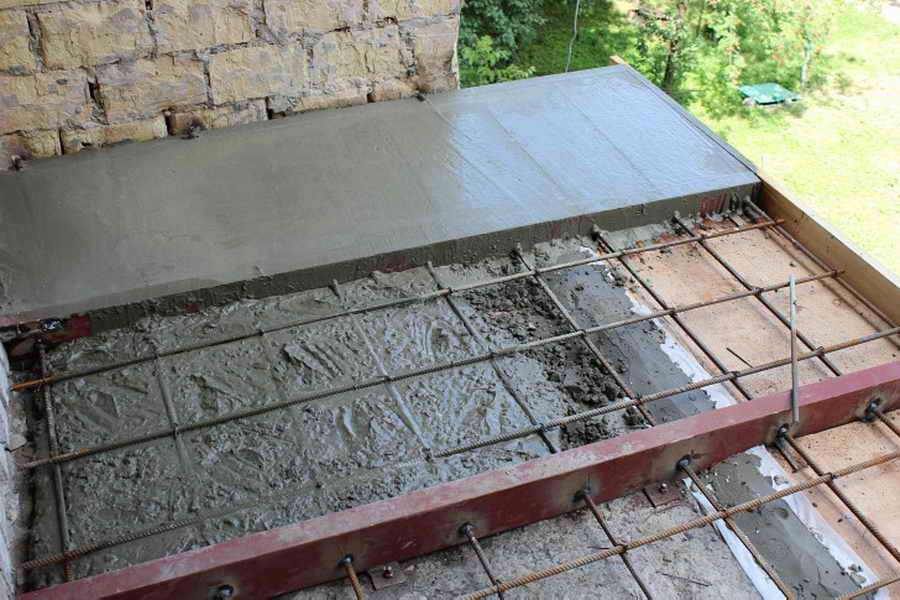 - Приготовленная бетонная смесь заливается с высоты не более 50 сантиметров, после чего выравнивается правилом.