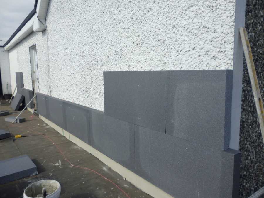 Утепление фасадов пенопластом требует продуманной отделки здания. Чаще всего осуществляется штукатурка внешней поверхности стен. Для этого производят армирование стен и после полного высыхания наносят штукатурку.