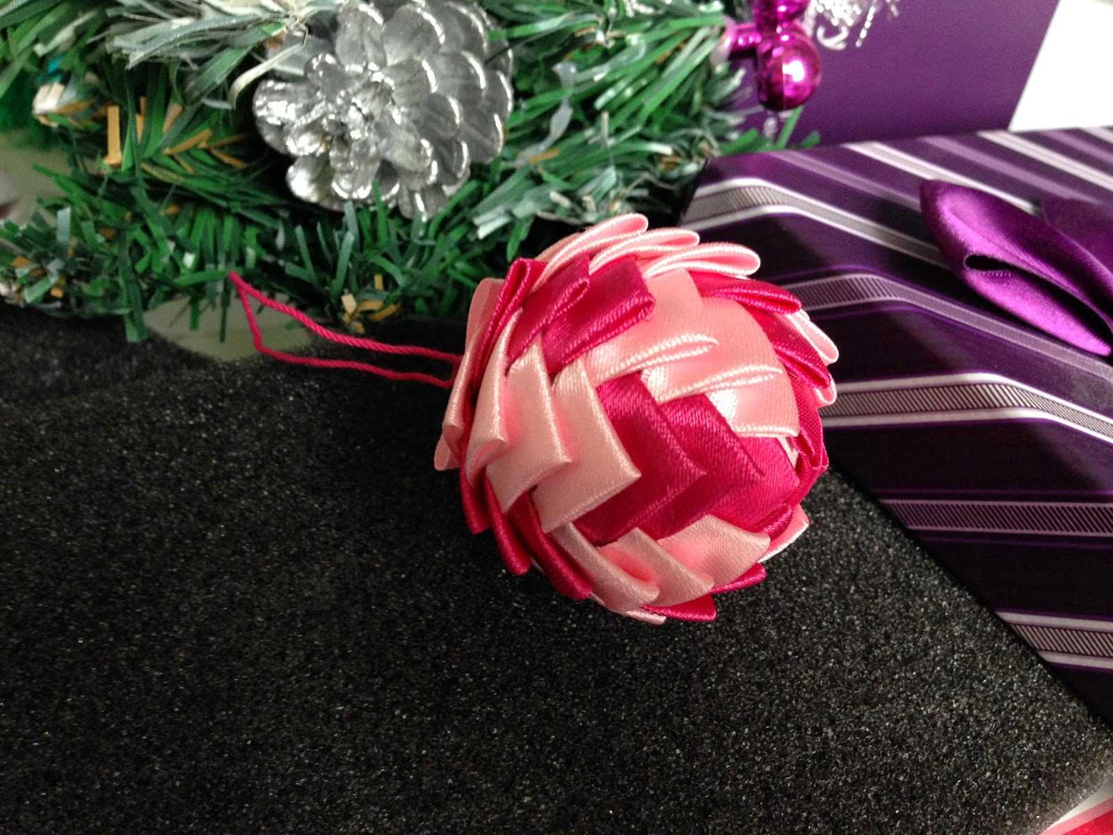 Каждый новогодний шар из атласных лент будет смотреться ярко и сверкать на всю комнату. Данный мастер-класс позволит быстро и просто выполнить елочную игрушки из подручных материалов.
