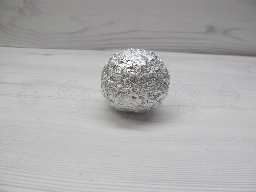 3. Продолжаем добавлять новые части фольги, формируя при этом шар. Чем ровнее у него будут стороны, тем лучше. Фольга хороша тем, что вы всегда сможете смять какую-то область, если вам она покажется неровной.