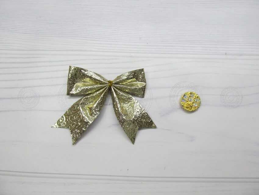 14. Берем праздничный бант и кабошон (некий плоский круглый камень или иной драгоценный предмет).