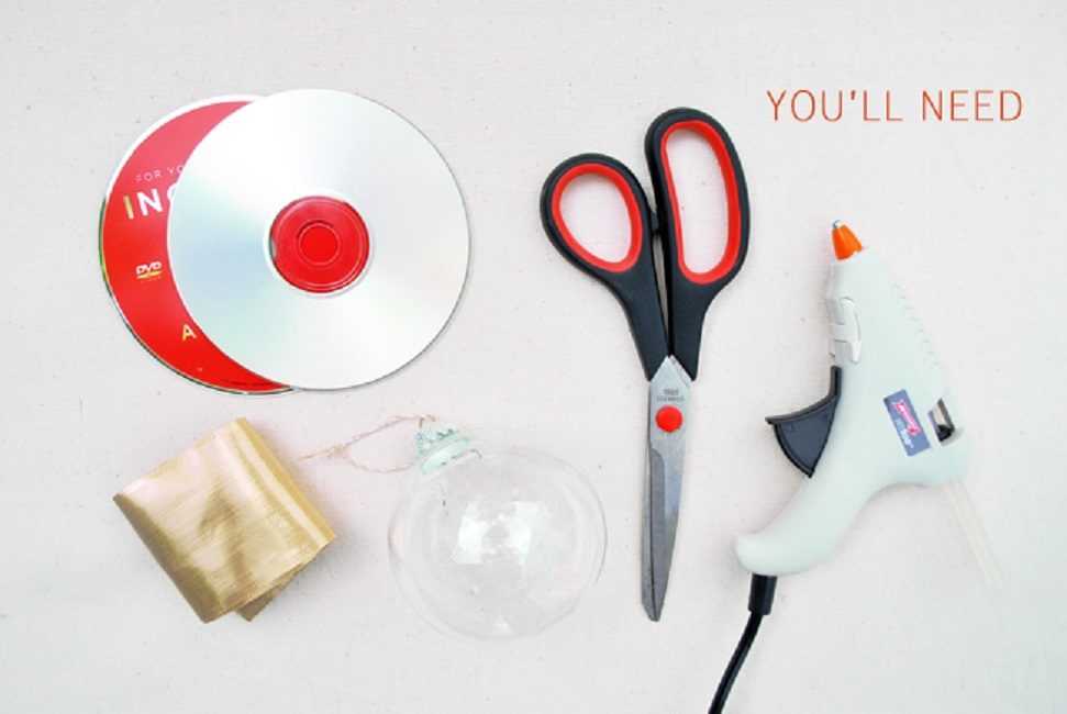 - Нарезать компакт диски на небольшие кусочки разной формы. Длина каждого кусочка не более 5 мм. Для этого используют острые ножницы с мощными лезвиями. Работа не самая легкая