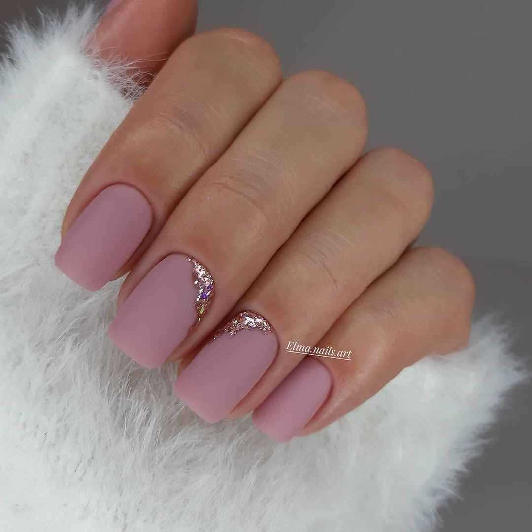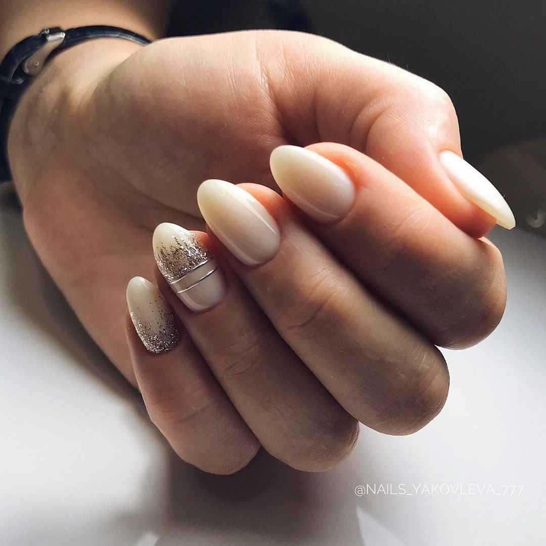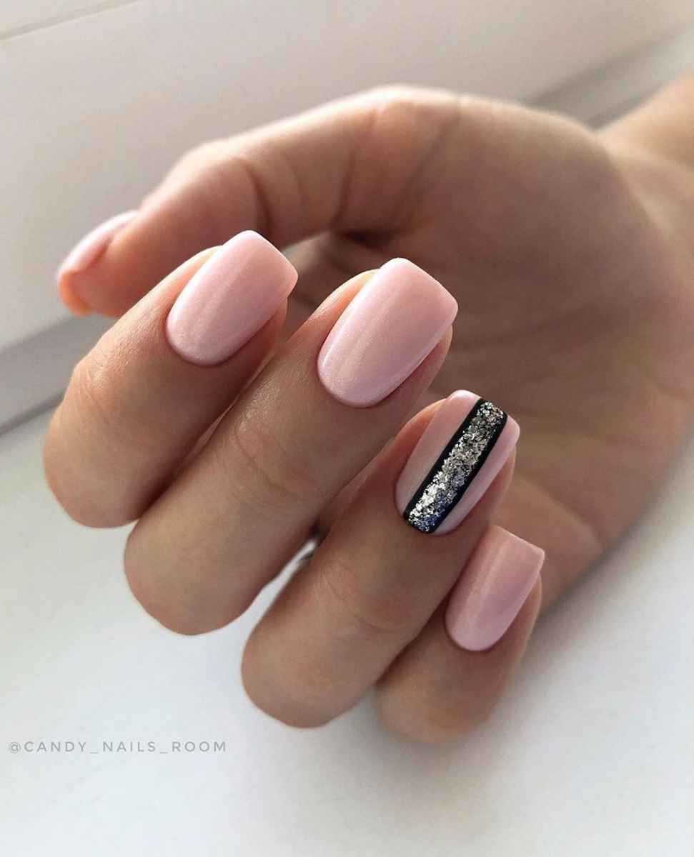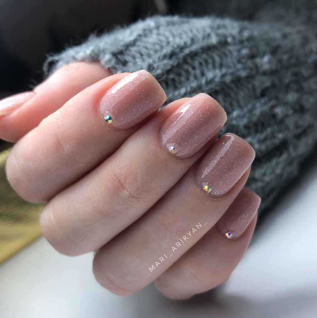 На фото модные тенденции 2019 нюдового дизайна ногтей с блестками: