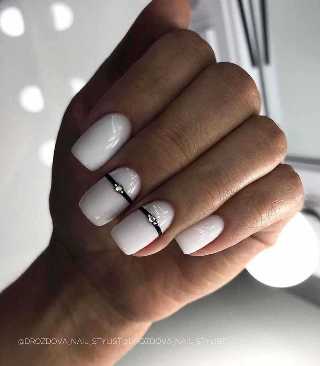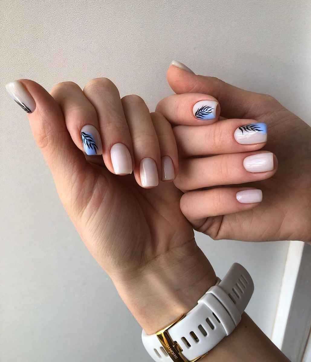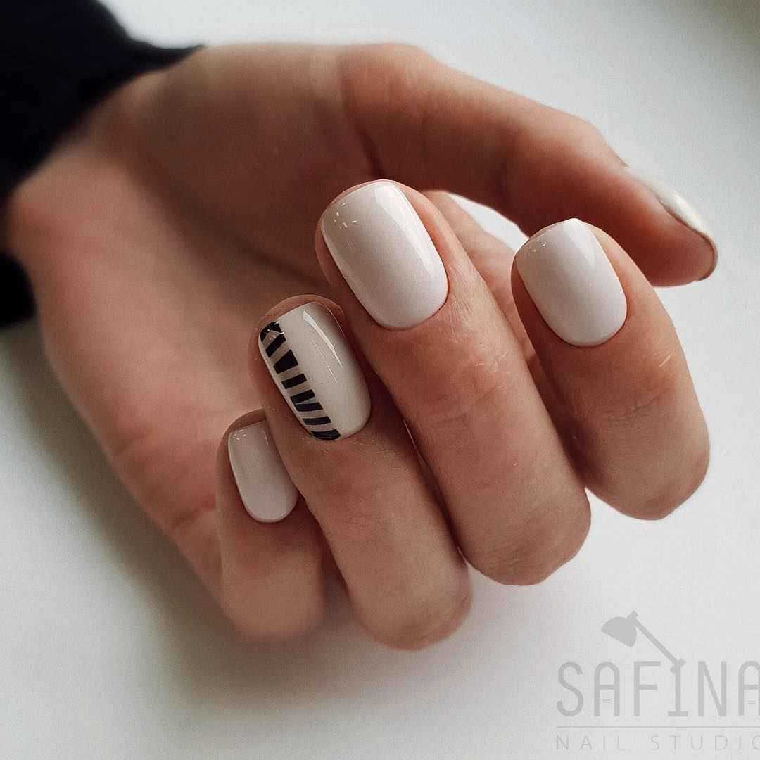 Разбавить спокойный и нежный вид ногтей можно с помощью черного цвета. Его должно быть немного. Это могут быть: небольшие полосы; узоры и орнаменты; геометрические фигуры. Материал – гель-лак, акриловая краска, слайдеры, трафареты.