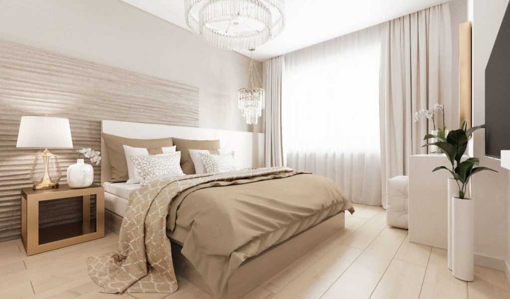 Спальня — важная комната в доме. К ней особые требования — дизайн должен способствовать качественному отдыху, восстановлению сил и энергии, растраченных за день. Бежевый подходит всем — он создает благоприятный эмоциональный фон, в котором хочется находиться.