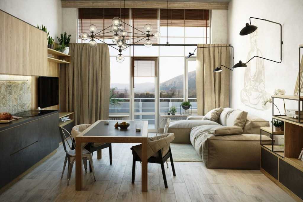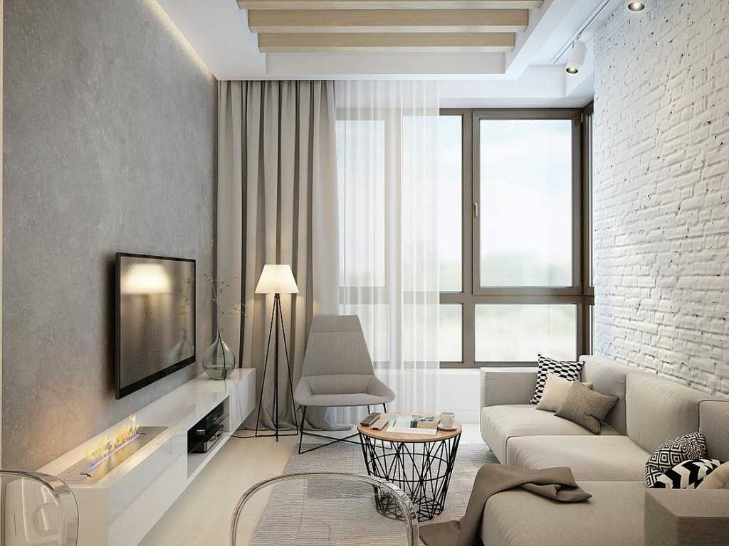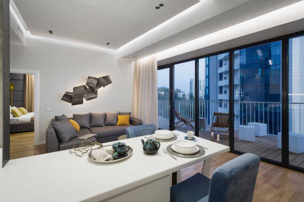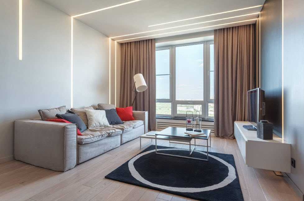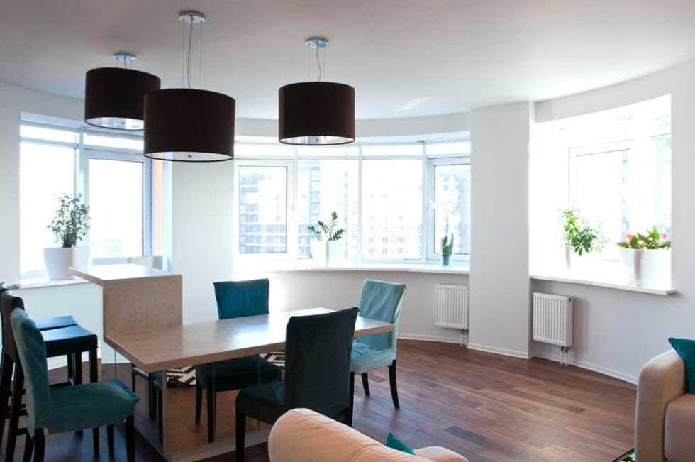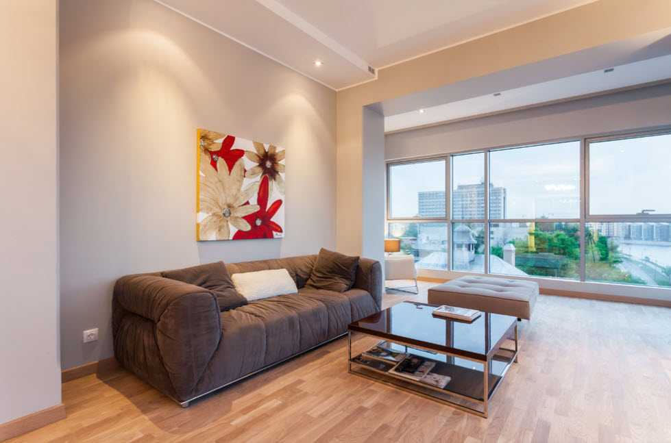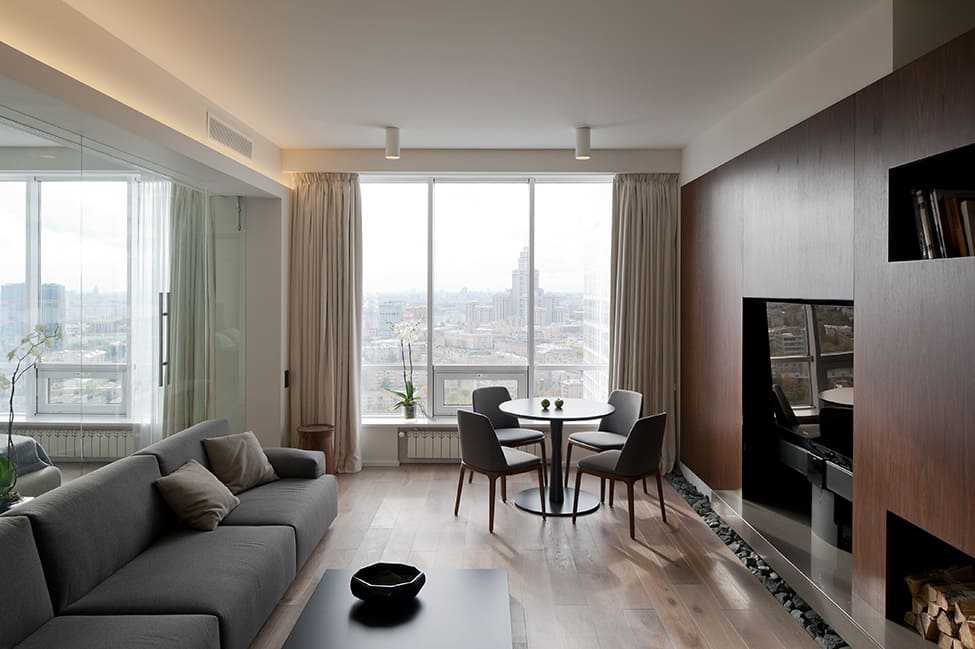 Лаконичный вариант дизайна в квартире с увеличенными окнами
