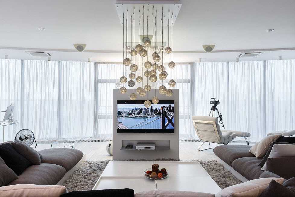 В большой комнате стоит использовать несколько источников света