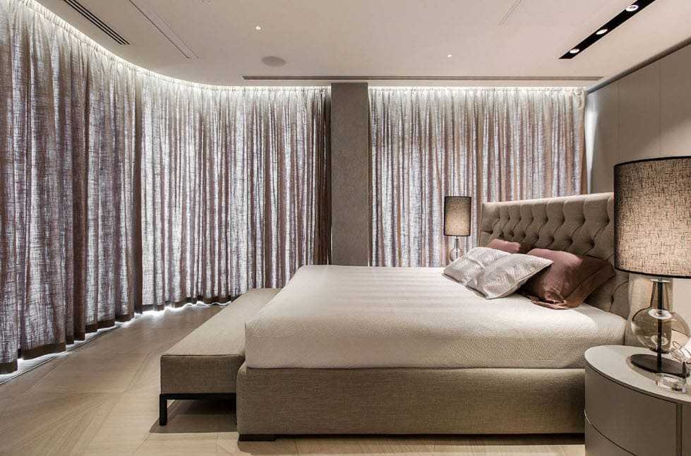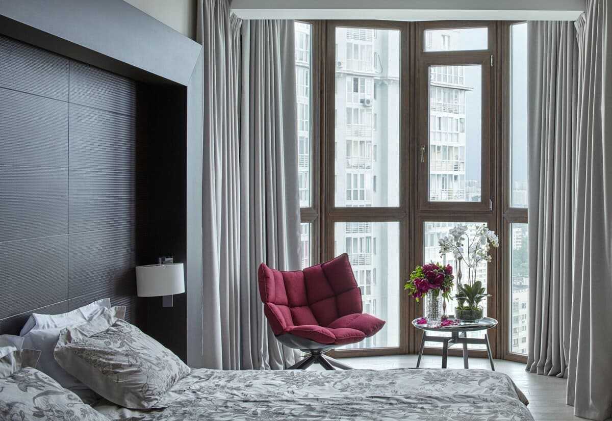 Панорамные окна со шторами в спальне