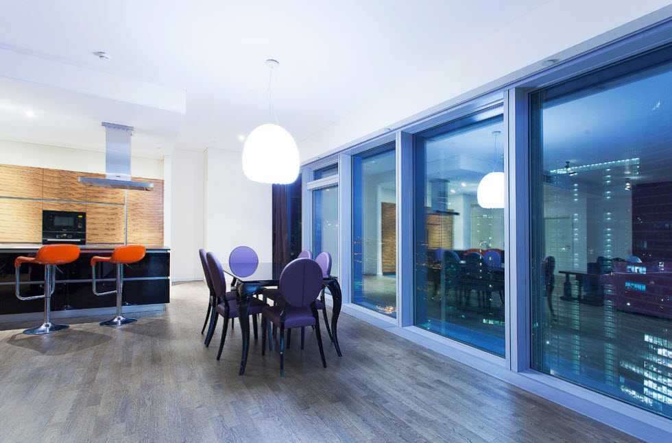 Прежде, чем установить панорамные окна в квартире, нужно обратить внимание на отделочные материалы, что использовались для оформления внутреннего пространства. Все дело в том, что каждая поверхность имеет тот или иной уровень светоотражения