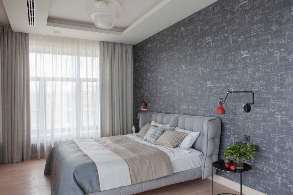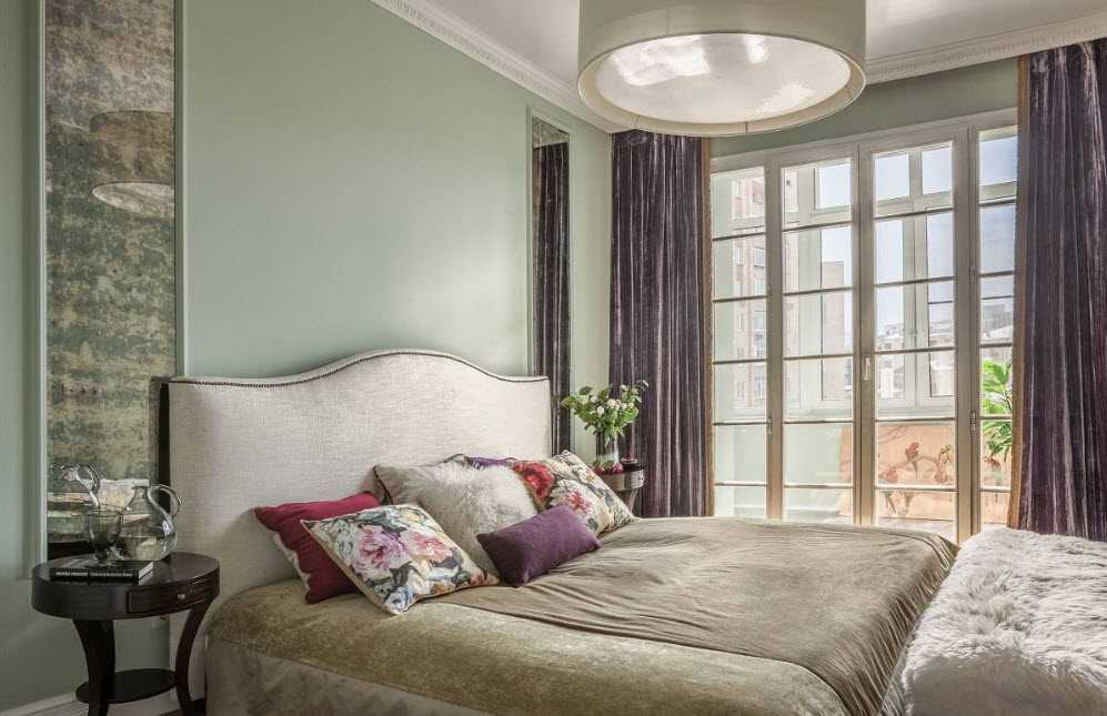 - окна находятся на одной стене, что позволяет легко расположить тут два-три кресла, маленький столик, торшеры, кровать будет располагаться немного в глубине помещения, где будет создана интимная зона со слегка притененным светом;