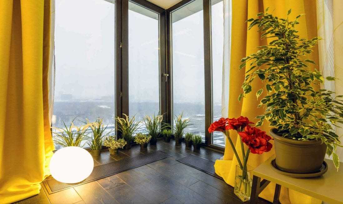 Здесь можно оборудовать зимний сад, кабинет, библиотеку. Желательно утеплить стены и пол, сделать современную отделку, поставить диван и превратить нежилые квадратные метры в зону отдыха. Панорамное остекление нужно для того, чтобы визуально увеличить пространство. Для стандартных балконов выбирают классические или угловые окна. Чтобы здесь было комфортно находиться в холодное время года, надо вынести батарею. Ставить ее нужно около стены.