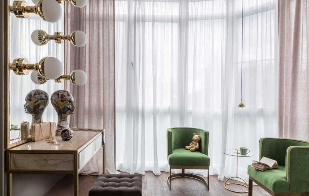 - Тонкие прозрачные занавески. Смогут украсить помещение, если его дизайн приближен к классическому, также подойдут и для интерьеров в стилях прованс и эклектика.