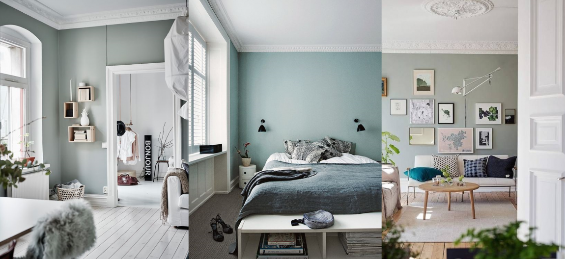 Если хотите оставить пространство максимально светлыми, можете отказаться от контрастных тёмных оттенков. Но не белым единым… Альтернативой белоснежному пространству станут серые и припыленные пастельные тона. В светлое пространство органично впишется любой натуральный оттенок. Среди фаворитов: неотбеленный лен и прохладная мята. Жемчужно-серый станет идеальным компаньоном для светлого дерева.