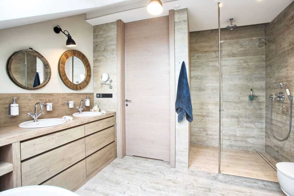 Это очень важно, особенно если ванную комнату будут посещать маленькие дети или пожилые люди. Наличие тропического душа гарантирует комфортное купание, а бесконтактный смеситель с датчиком движения исключит риск того, что вода не включится, например, у дошкольника