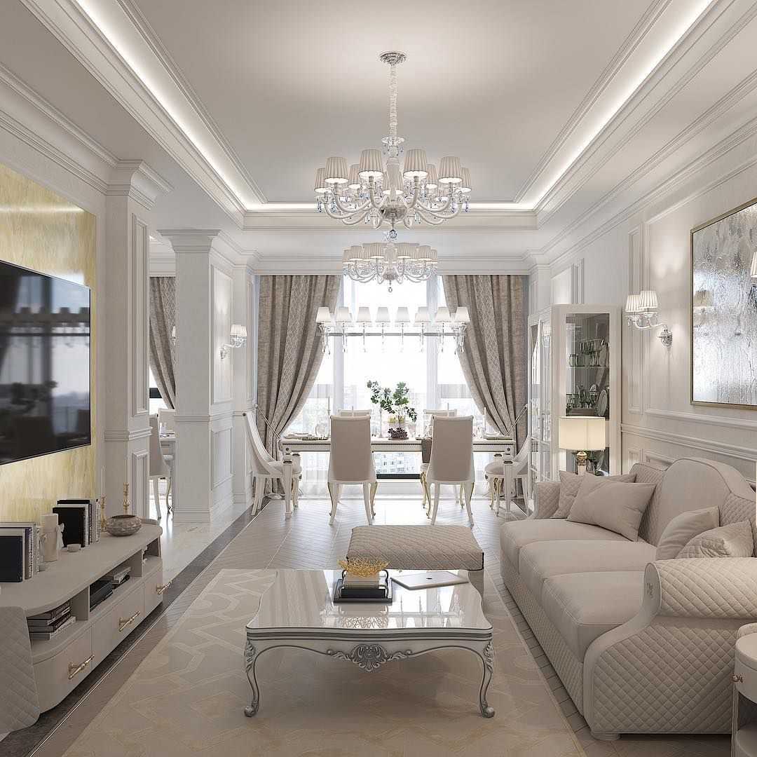 Интерьер гостиной в светлых тонах цветовой палитры дает массу возможностей для дизайна.