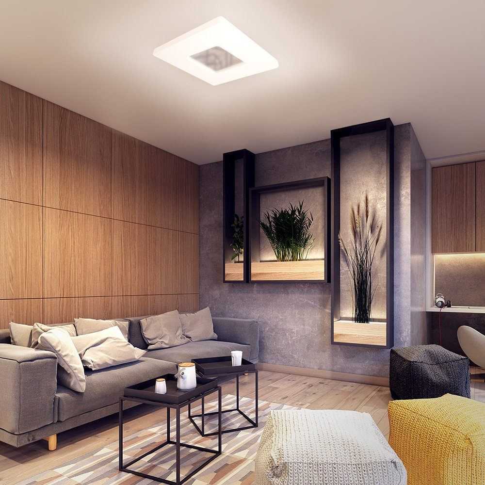 Чтобы спланировать освещение, сначала условно раздели гостиную на зону. Тебе нужен рассеянный верхний свет, отдельная подсветка у рабочего места или кресла с книжной полкой. Возможно – торшеры или бра у дивана. В современных интерьерах часто используются декоративные светодиодные или неоновые подсветки.