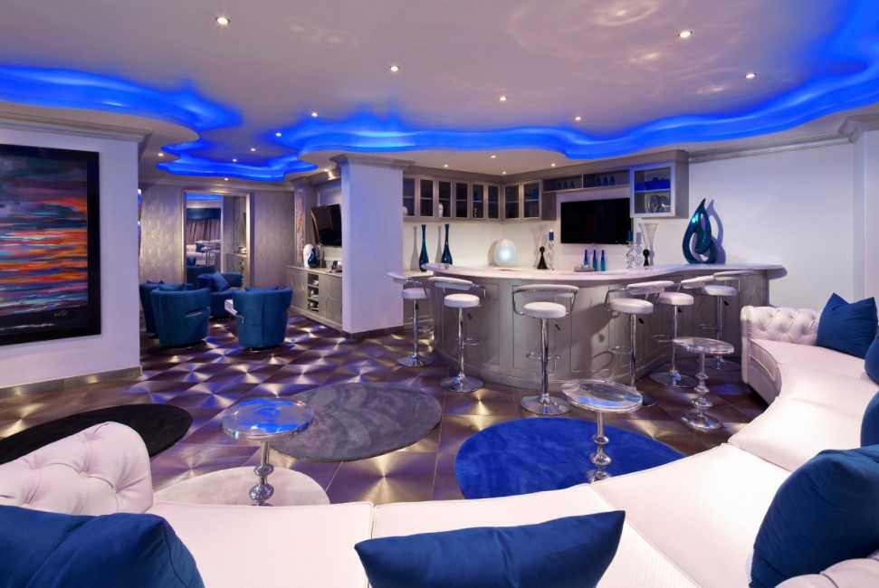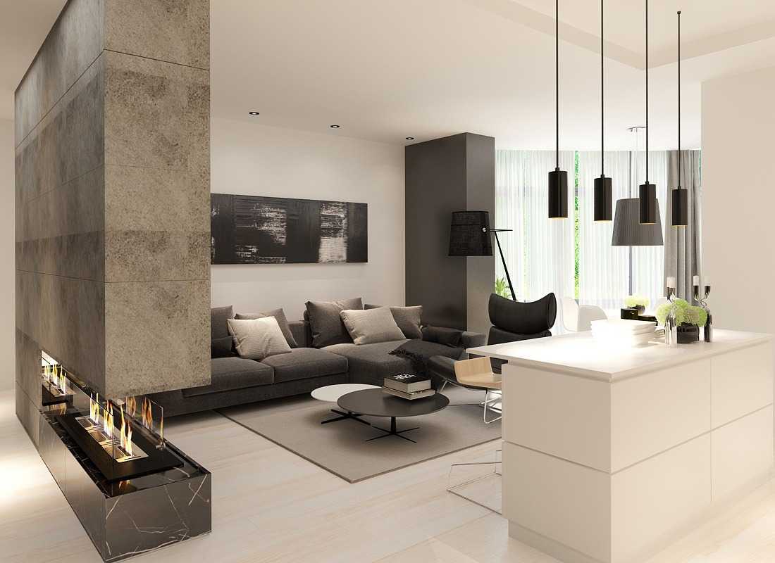 Для зонирования просторной гостиной отлично подходит островная расстановка, барная стойка и стеллажи. Очень удобно использовать модульные мебельные гарнитуры