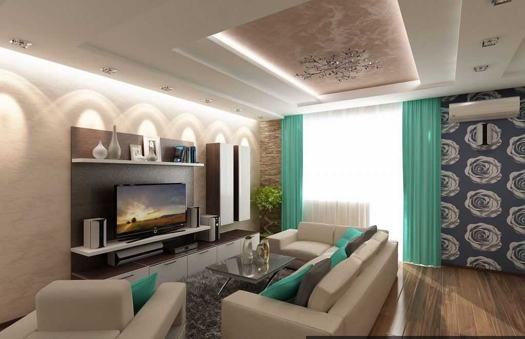 Если вы занимаетесь оформлением своими руками, то для боковых стен выбирайте колер более темных или теплых тонов. Таким образом, вытянутая комната расширится и уменьшится в длину. Для этого необходимо решиться с цветом, в какой покрасить стены в зале.