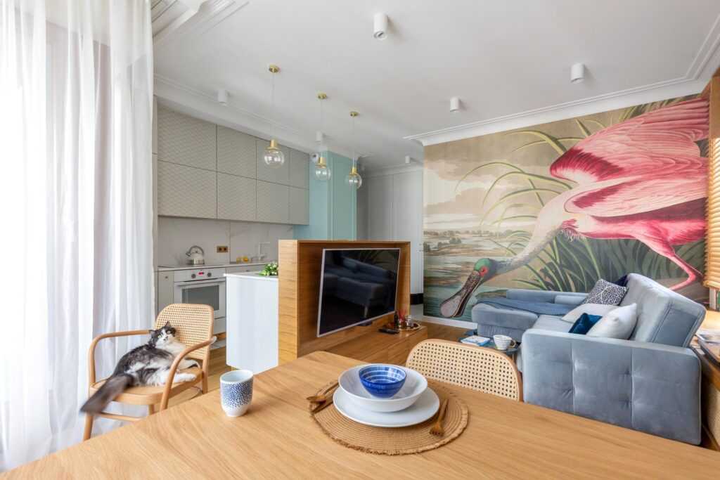 Если квартира маленькая, нужно быть осторожнее с цветовой гаммой. Просторную кухню-студию можно оформить в любой палитре. А вот если каждый квадратный метр на счету, то лучше подобрать пастельные оттенки для дизайна.