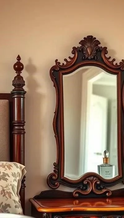 Антикварное зеркало в резной раме над камином или старинный сундук у кровати добавят комнате неповторимый характер.