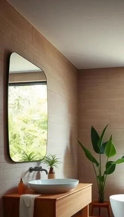 Ванная комната: Используйте натуральный камень и дерево для создания спа-атмосферы. Металлические элементы в сантехнике и декоре придадут роскоши. Экологичные материалы и энергоэффективные решения подчеркнут заботу об окружающей среде.