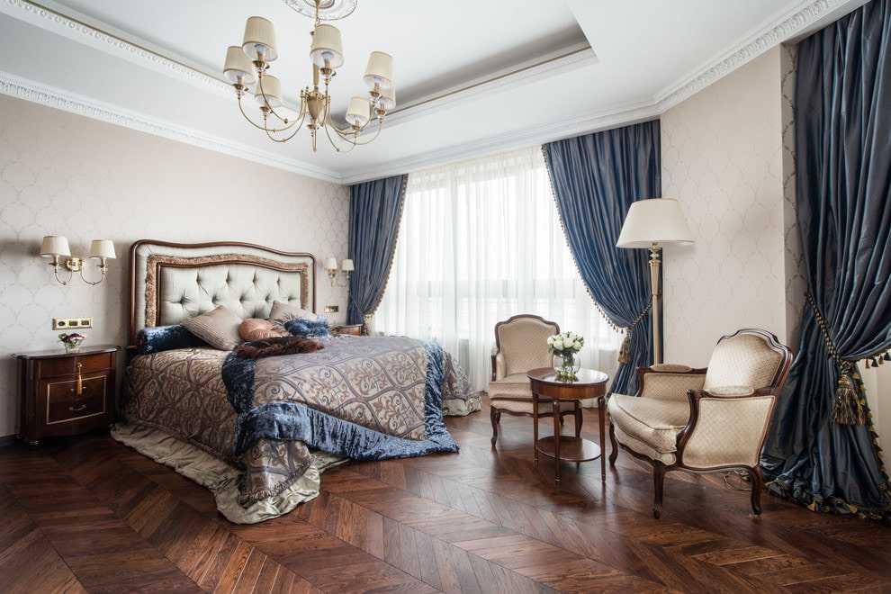 Синие занавески в помещении в классическом стилеИсточник severdv.ru