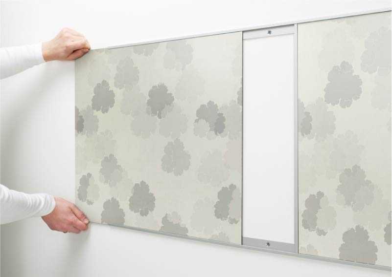 Поклейка не отличается от обычного процесса – выравнивают и грунтуют стену, после чего аккуратно совмещают части и разглаживают поверхность. Выдерживают необходимое для высыхания время, после чего наносят влагостойкую моющуюся краску. Впоследствии можно менять цвет хоть дважды в год, что очень удобно, ведь если будет заменена мебель, переделывать фартук не придется.