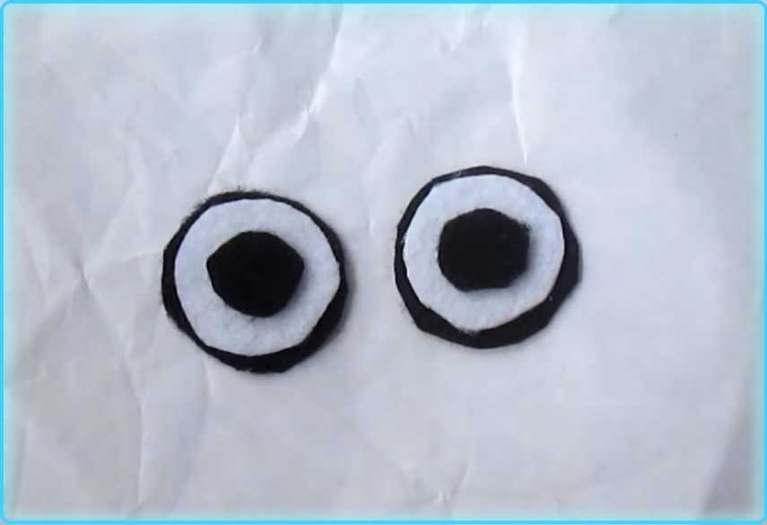 После этого из клеевого флиса нужно сделать глазки. Их мы приклеим к вязаной шапке.