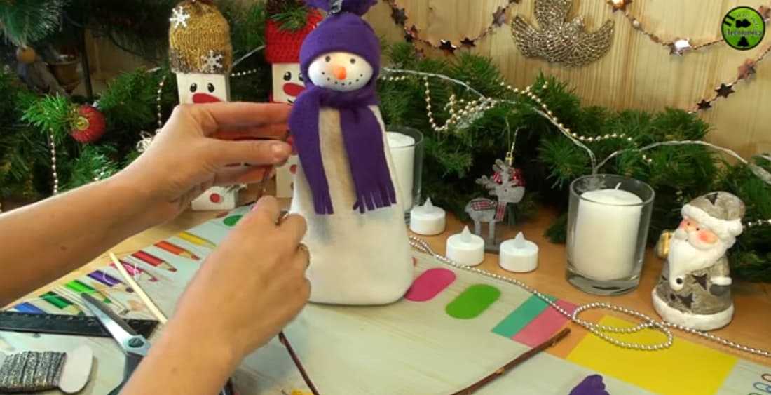 Снеговиков можно сделать несколько, чтобы они составили компанию. Стоит только одеть их в разные аксессуары, и получатся неповторимые фигурки.