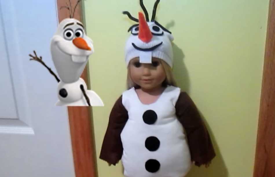 Готовый костюмчик будет похож на образ снеговика Олафа из мультика.