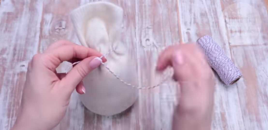 Надуйте воздушный шарик. Хаотично наматываем нитку на шарик и оставляем на несколько часов до полного высыхания. Когда веревка стала твердой и сухой, можно прокалывать шарик и вытаскивать его.