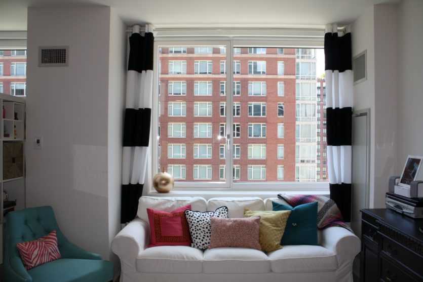 Дабы придать помещению уют и комфорт, выбирайте светлые варианты штор. Благодаря им помещение будет казаться больше. А вот при помощи полос Вы можете визуально поднять или расширить пространство.