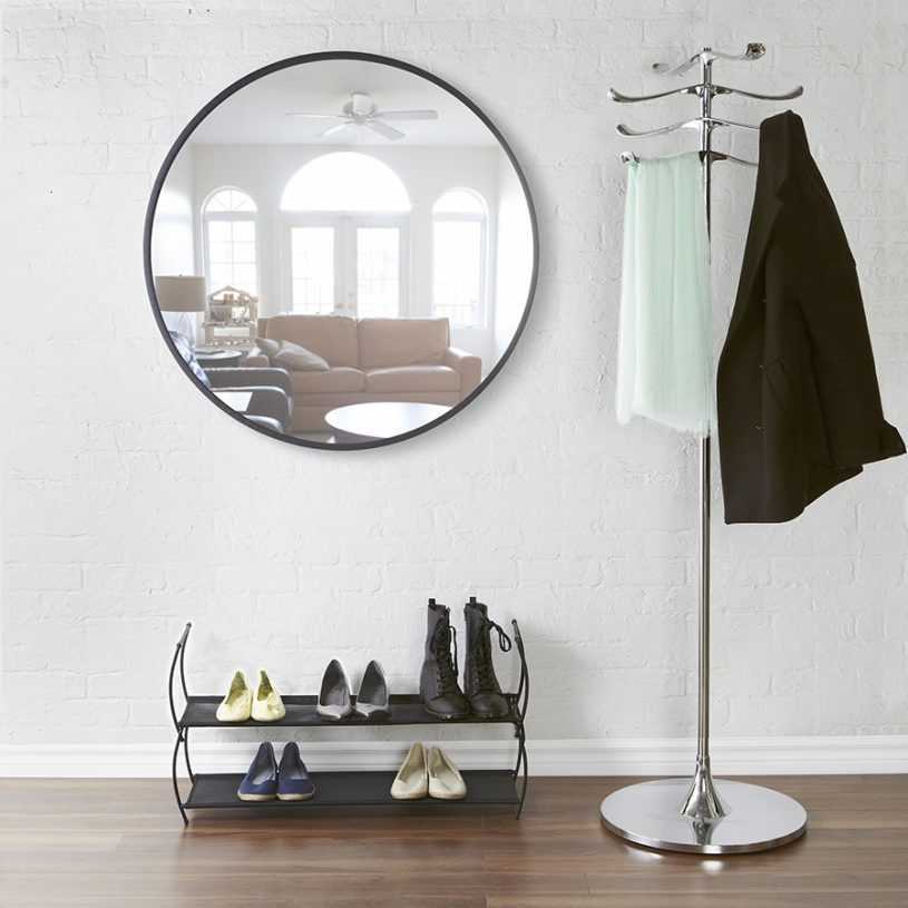 Стокгольм — круглое зеркало икеа. Для данного стиля использовались такие материалы, как грецкий орех. На первый взгляд зеркало покажется довольно обычным и простым. Но если приглядеться, то в нижней области ширина круга намного больше. Данная область отлично подойдет в роли полки для необходимых мелочей.