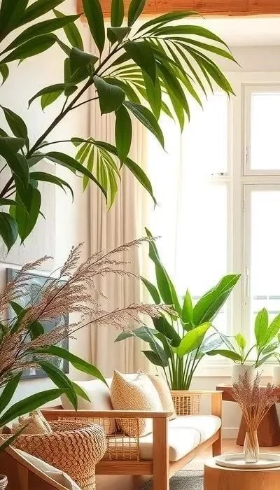 Вдохновитесь природой: добавьте в интерьер живые растения, деревянные элементы и натуральные ткани. DIY-проект: создайте композицию из сухоцветов в керамической вазе.