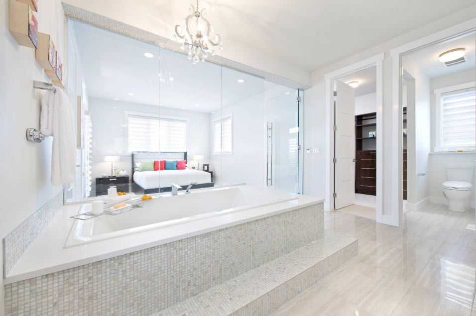 Фото современного дизайна смежной ванной комнаты в двухкомнатной квартире 44 кв. м: