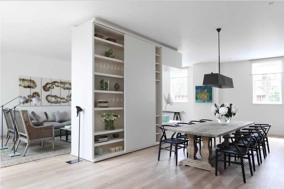 На фото можно увидеть, как лучше разграничить на функциональные зоны небольшое помещение: