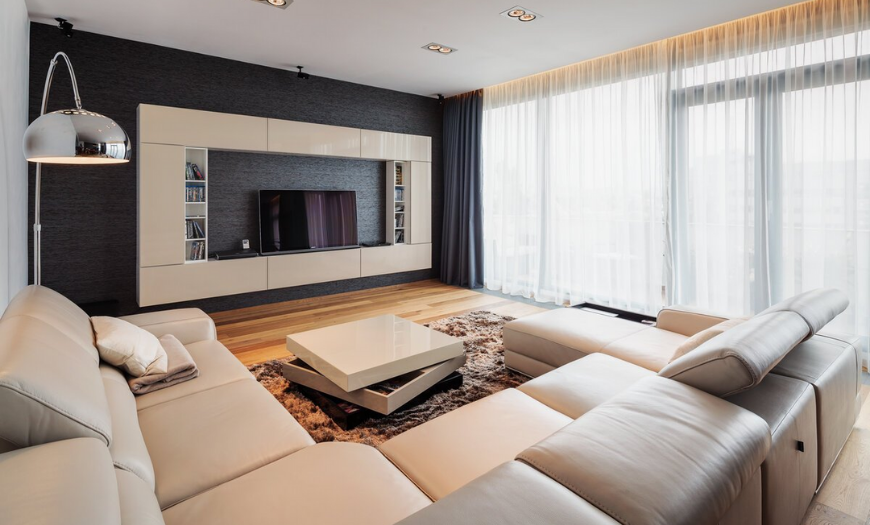 В гостиной важно иметь большие источники естественного освещения. Они расширяют пространство и создают ощущение домашнего уюта