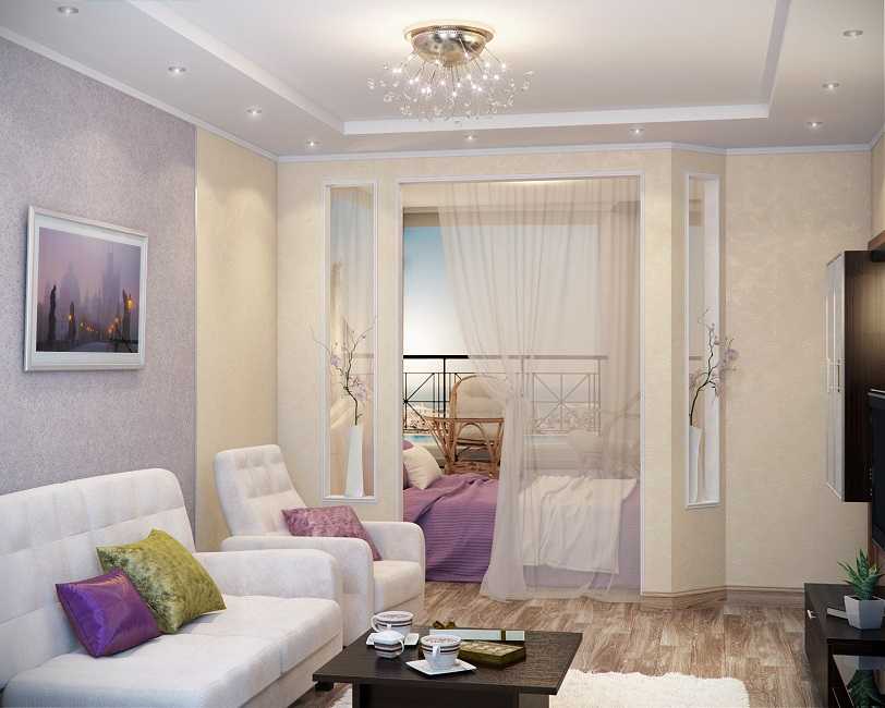 Если планируется оборудование в нише зоны отдыха, устанавливать перегородки не имеет смысла. Пространство является логическим продолжением общего интерьера однокомнатного жилья, служит для дружеских посиделок и не нуждается в разграничении квартиры.